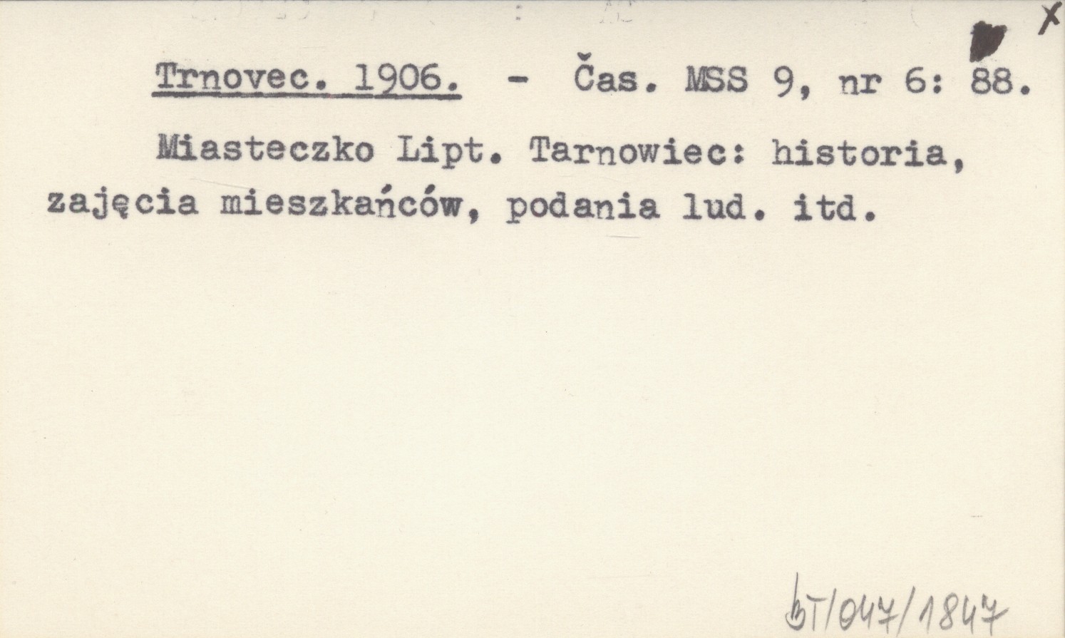 Časopis Muzeálnej Slovenskej Spoločnosti, 9, nr 6: 88. Miasteczko Lipt. Tarnowiec: historia, zajęcia mieszkańców, podania lud. itd.