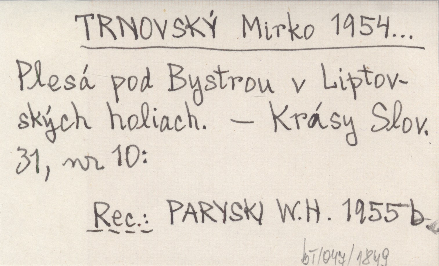 Krásy Slovenska, 31, nr 10. REC: PARYSKI W.H. 1955 b