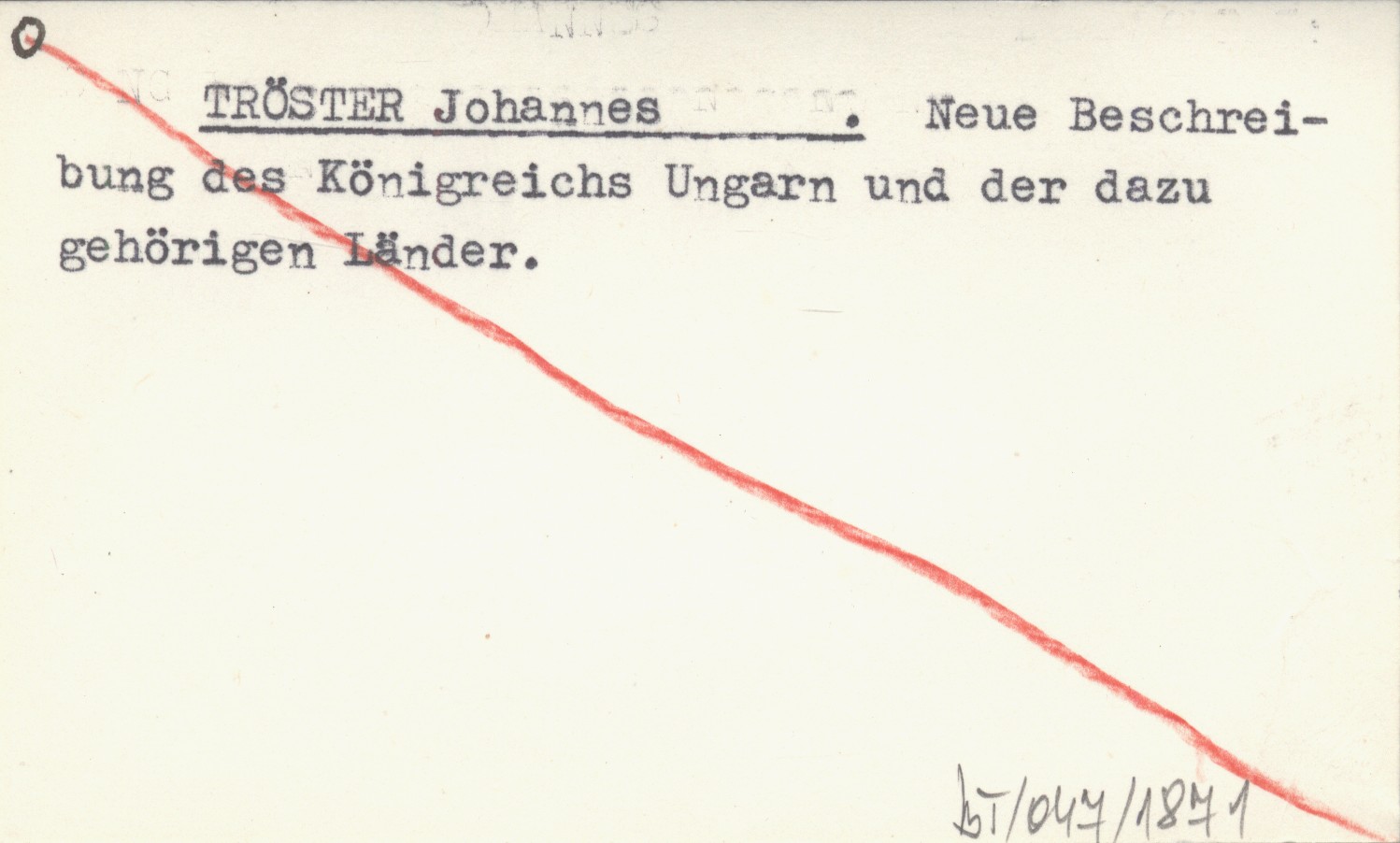 TRÖSTER Johannes Neue Beschreibung des Königreichs Ungarn und der dazu gehörigen Länder.