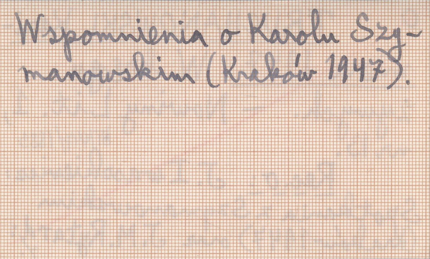 Nowiny Literackie, 1, nr 13. Rec.o: J. Iwaszkiewicz: Spotkania z Szymanowskim (Kraków 1947) oraz J. M. Rytard: Wspomnienia o Karolu Szymanowskim (Kraków 1947).