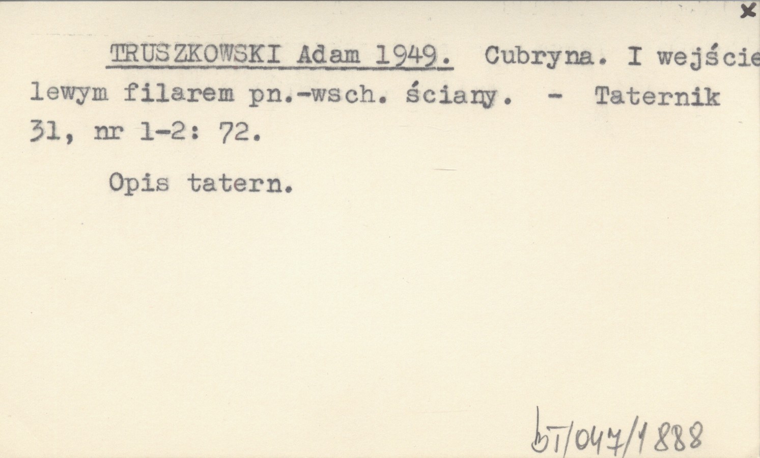 TRUSZKOWSKI Adam 1949 Cubryna. I wejście lewym filarem pn.-wsch. ściany.