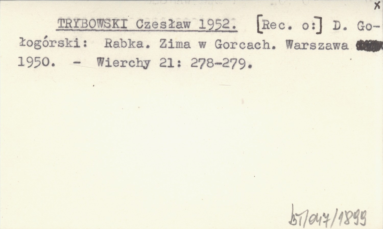 TRYBOWSKI Czesław 1952 D. Gołogórski: Rabka. Zima w Gorcach. Warszawa 1950.
