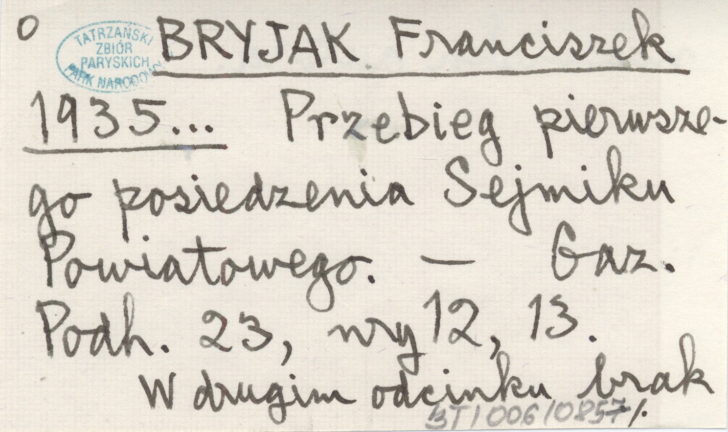 BRYJAK Franciszek 1935... Przebieg pierwszego posiedzenia Sejmiku Powiatowego.