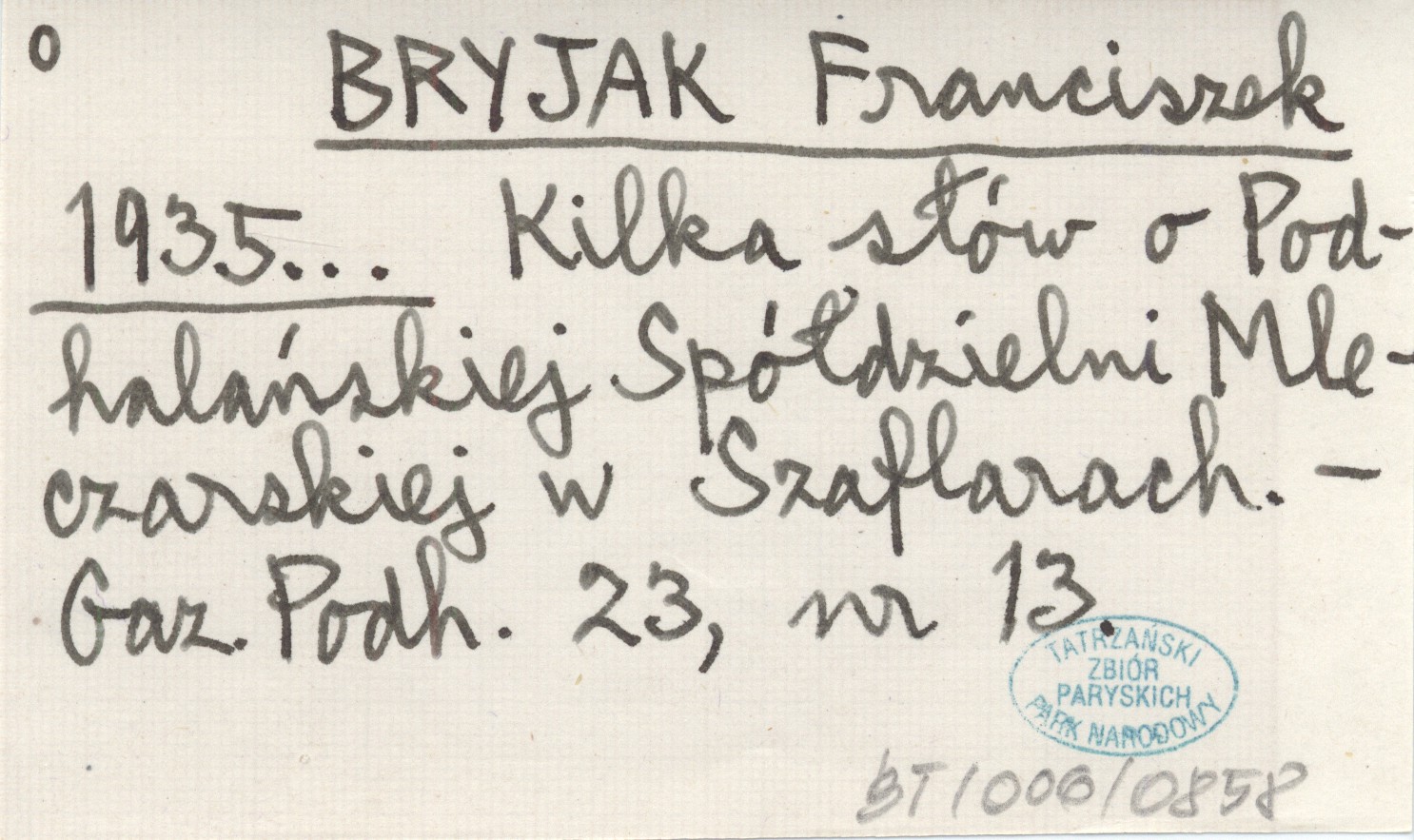 BRYJAK Franciszek 1935... Kilka słów o Podhalańskiej Spółdzielni Mleczarskiej w Szaflarach.