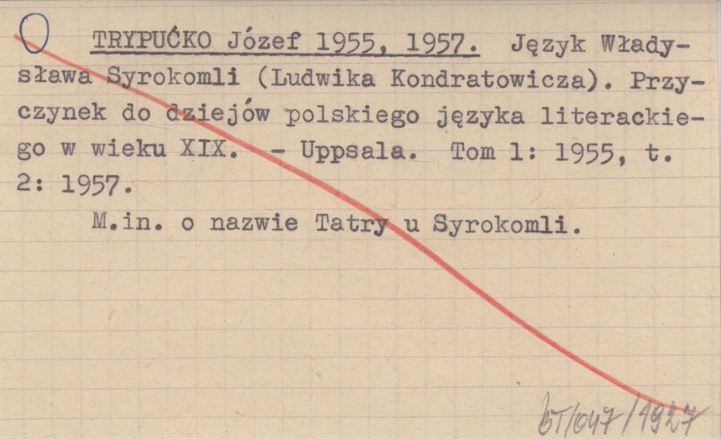 Uppsala , T. 1: 1955 ; t. 2: 1957. M.in. o nazwie Tatry u Syrokomli.