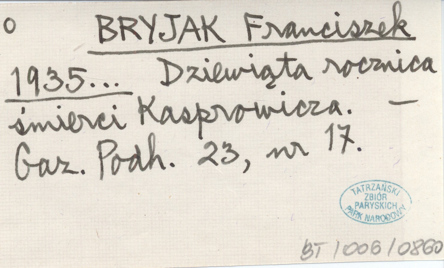 BRYJAK Franciszek 1935... Dziewiąta rocznica śmierci Kasprowicza.