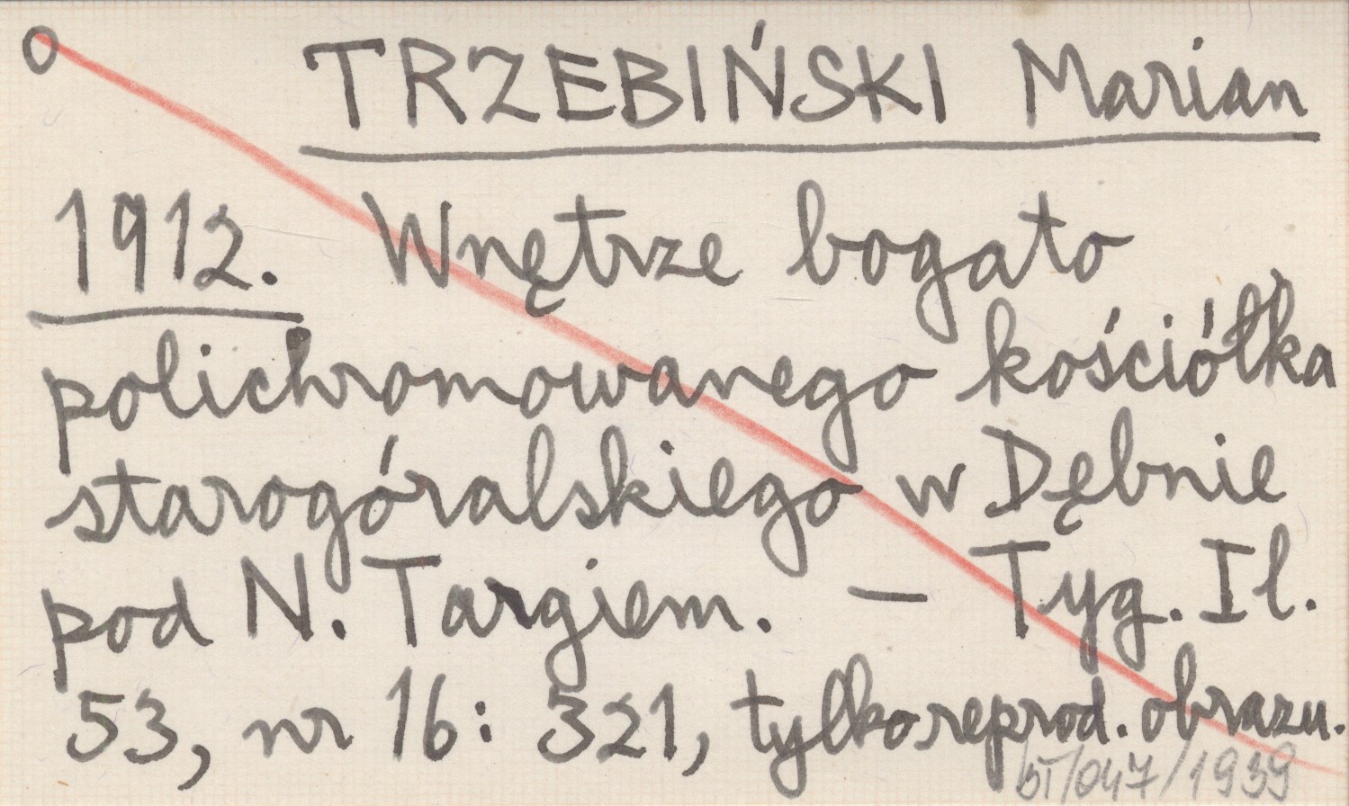 TRZEBIŃSKI Marian 1912 Wnętrze bogato polichromowanego kościółka starogóralskiego w Dębnie pod N. Targiem.