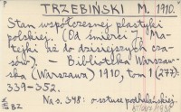 TRZEBIŃSKI M. 1910 Stan współczesnej plastyki polskiej. (Od śmierci J. Matejki aż do dzisiejszych czasów).