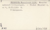 TRZEBUNIA Franciszek 1958 Kronika wydarzeń kulturalnych.