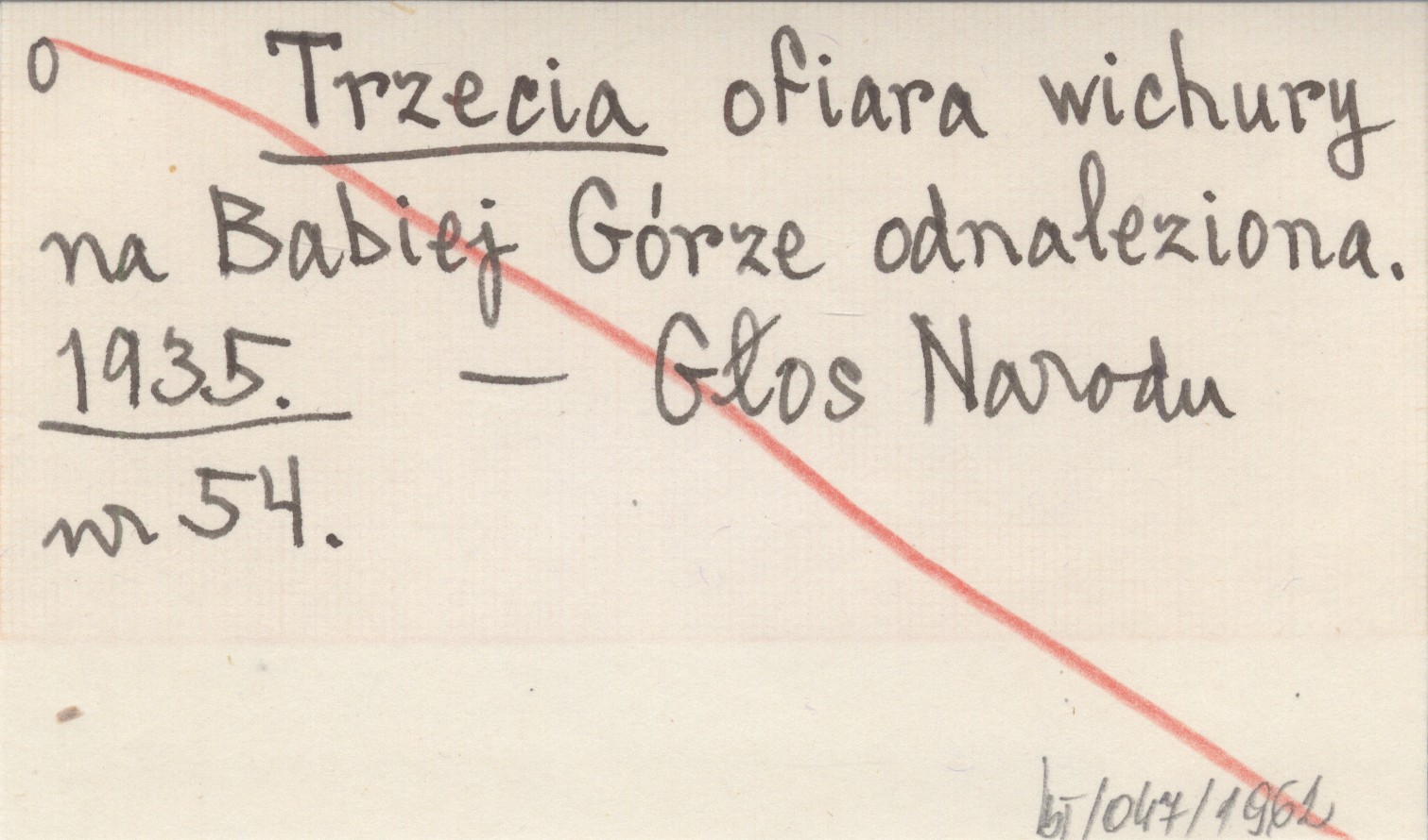 Trzecia ofiara wichury na Babiej Górze odnaleziona. 1935