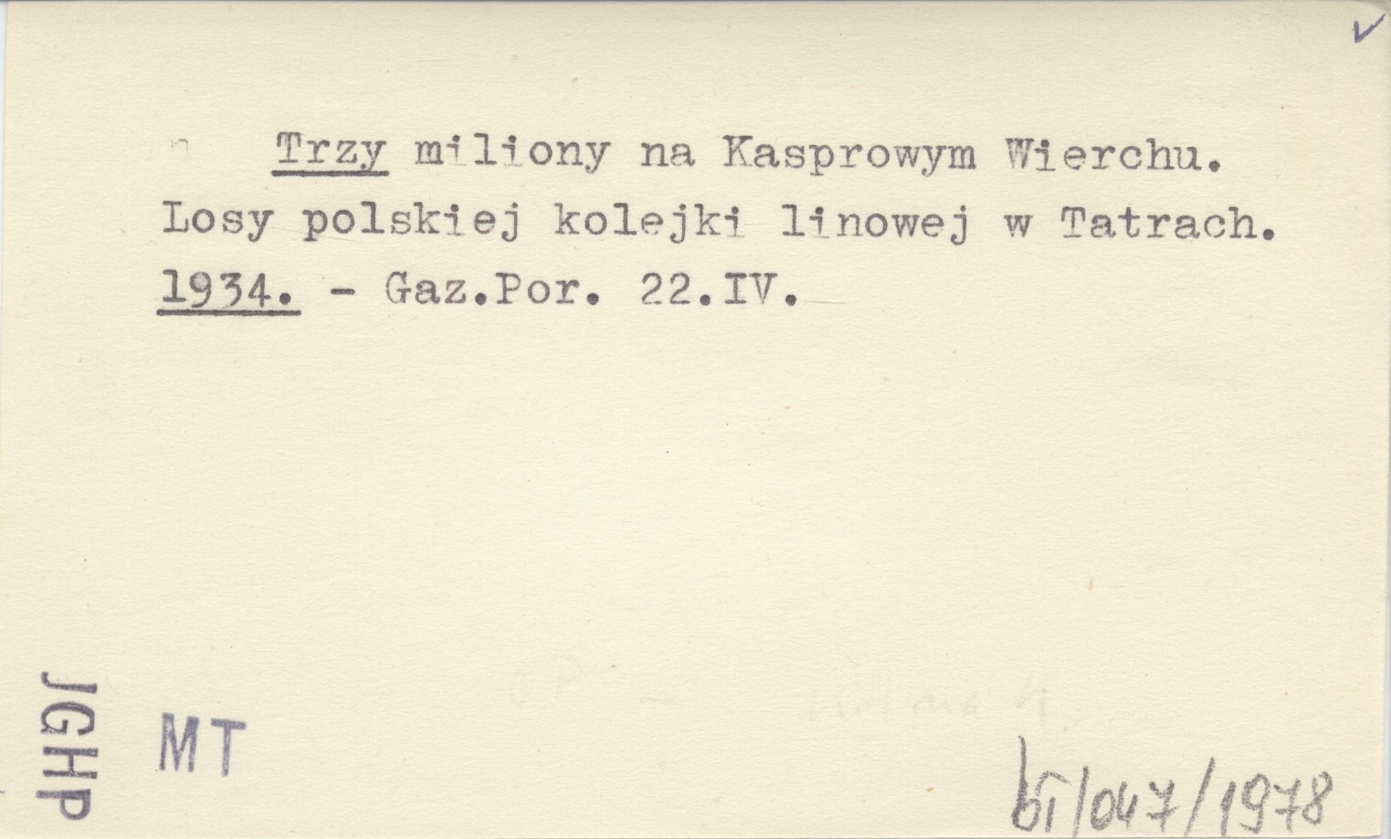 Trzy miliony na Kasprowym Wierchu. Losy polskiej kolejki linowej w Tatrach. 1934