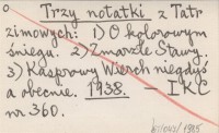 Trzy notatki z Tatr zimowych: 1) O kolorowym śniegu. 2) Zmarzłe Stawy. 3) Kasprowy Wierch niegdyś i obecnie. 1938