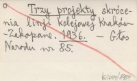 Trzy projekty skrócenia linji kolejowej Kraków-Zakopane. 1936