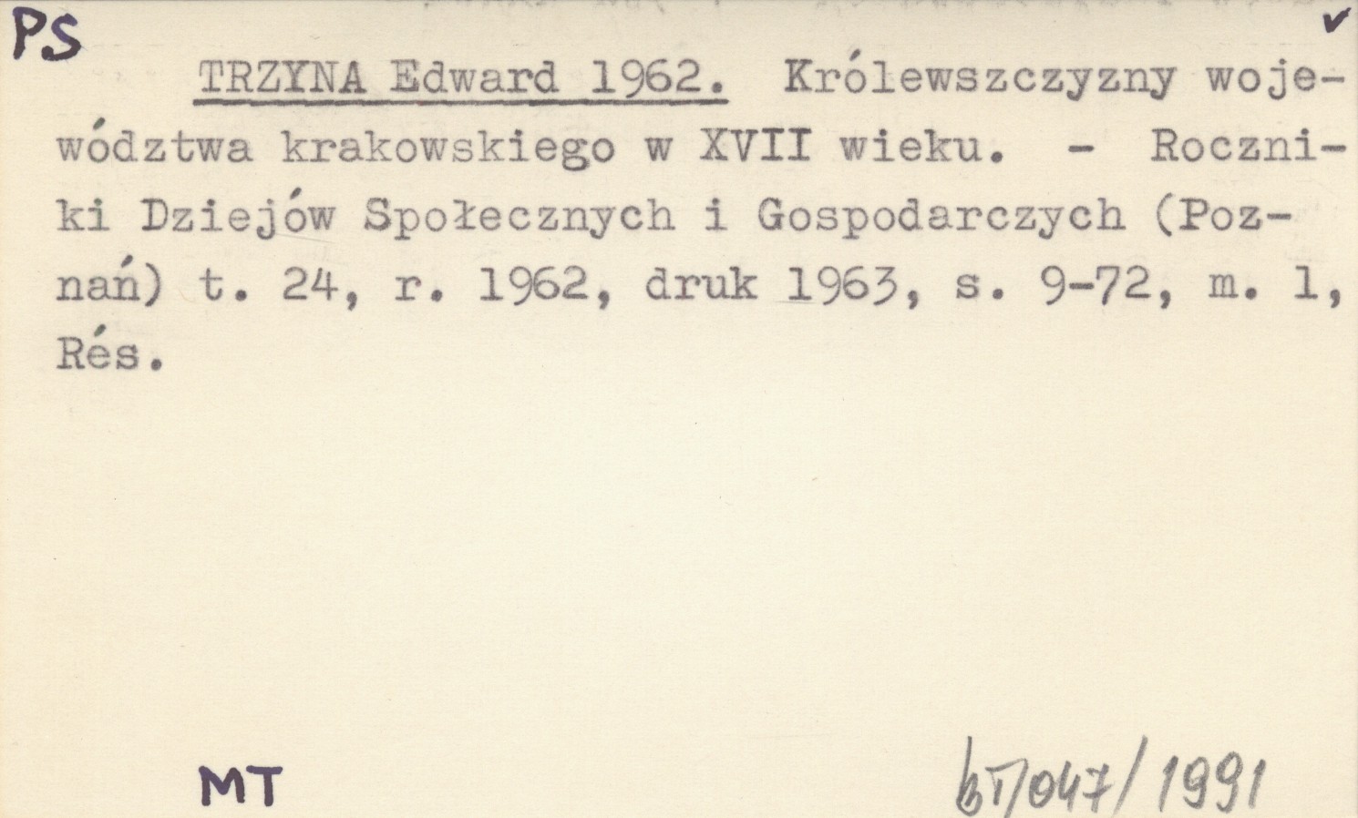 TRZYNA Edward 1962 Królewszczyzny województwa krakowskiego w XVII wieku.