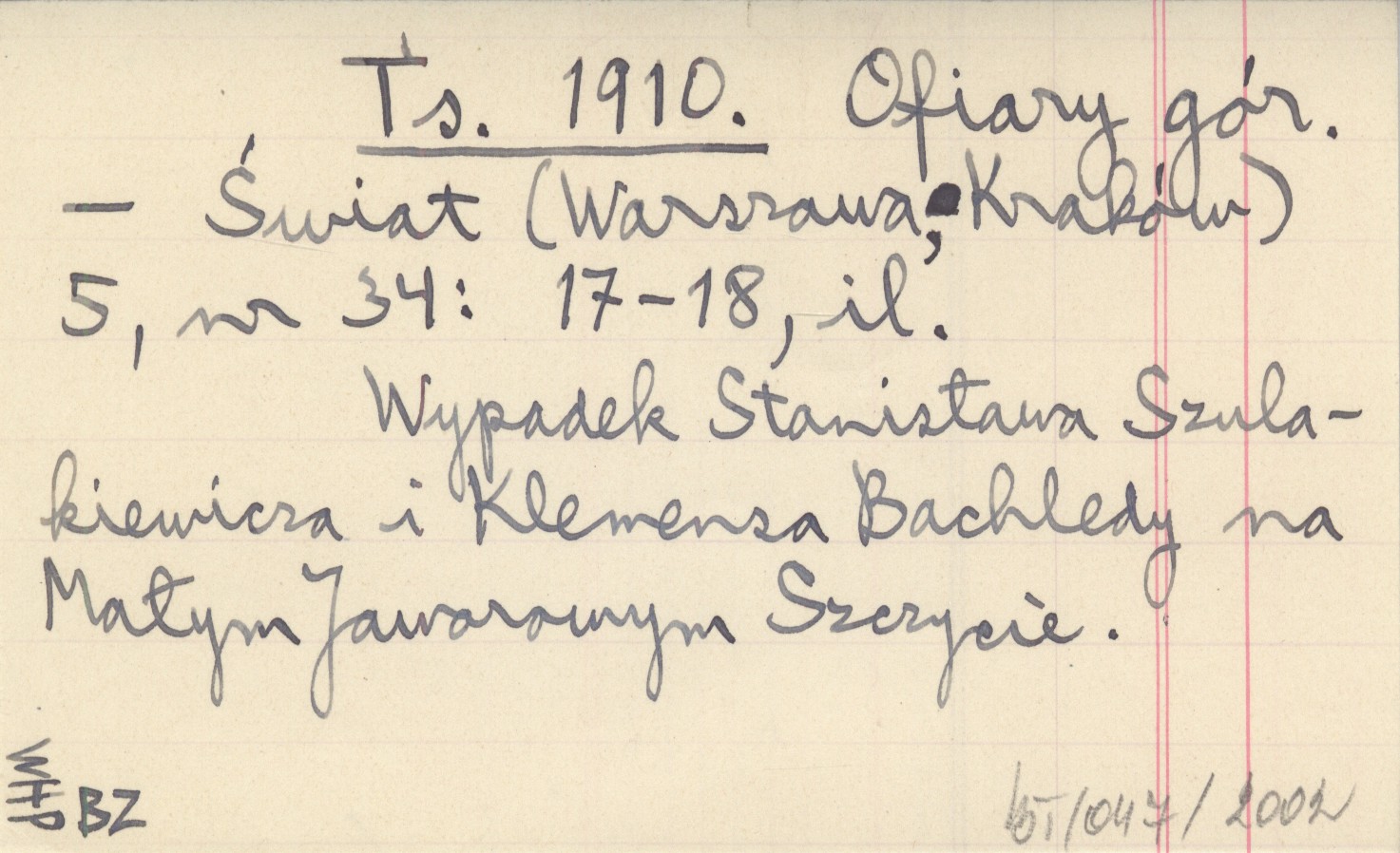 Świat (Warszawa ; Kraków ;) , 5, nr 34: 17-18, il. Wypadek Stanisława Szulakiewicza i Klemensa Bachledy na Małym Jaworowym Szczycie.