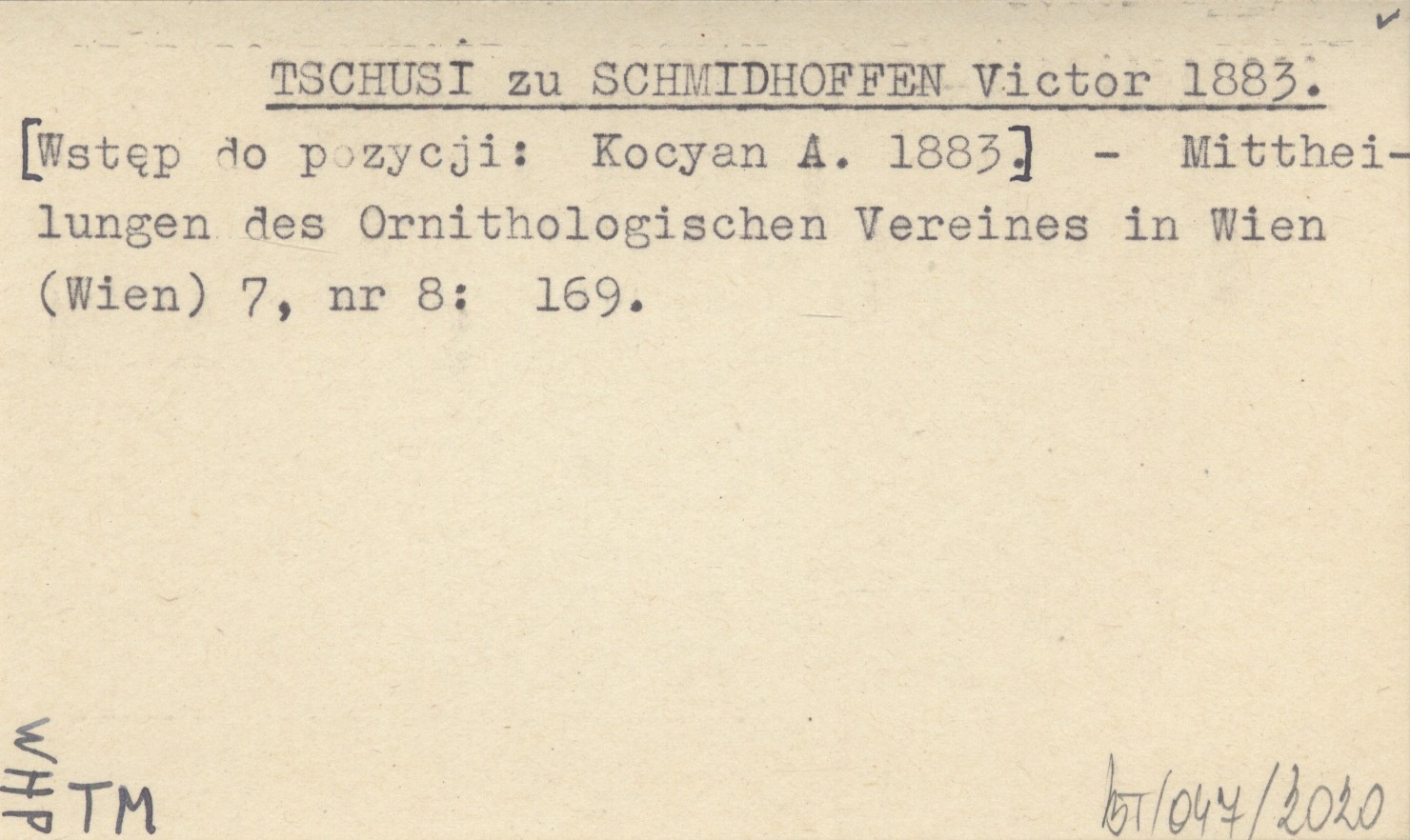 TSCHUSI zu SCHMIDHOFFEN Victor 1883 [Wstęp do pozycji: Kocyan A. 1883].