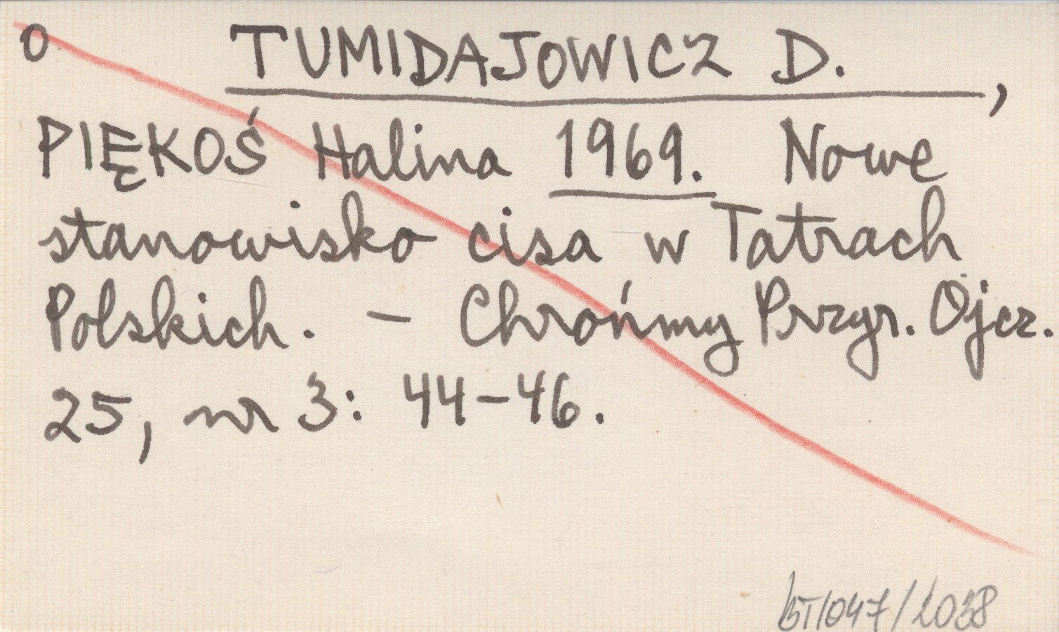 TUMIDAJOWICZ D. PIĘKOŚ, Halina. ; 1969 Nowe stanowisko cisa w Tatrach Polskich.
