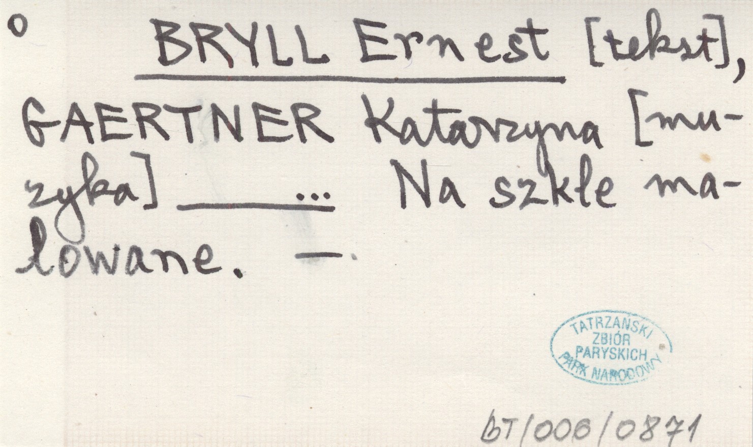 BRYLL Ernest GAERTNER, Katarzyna. ; Na szkle malowane.