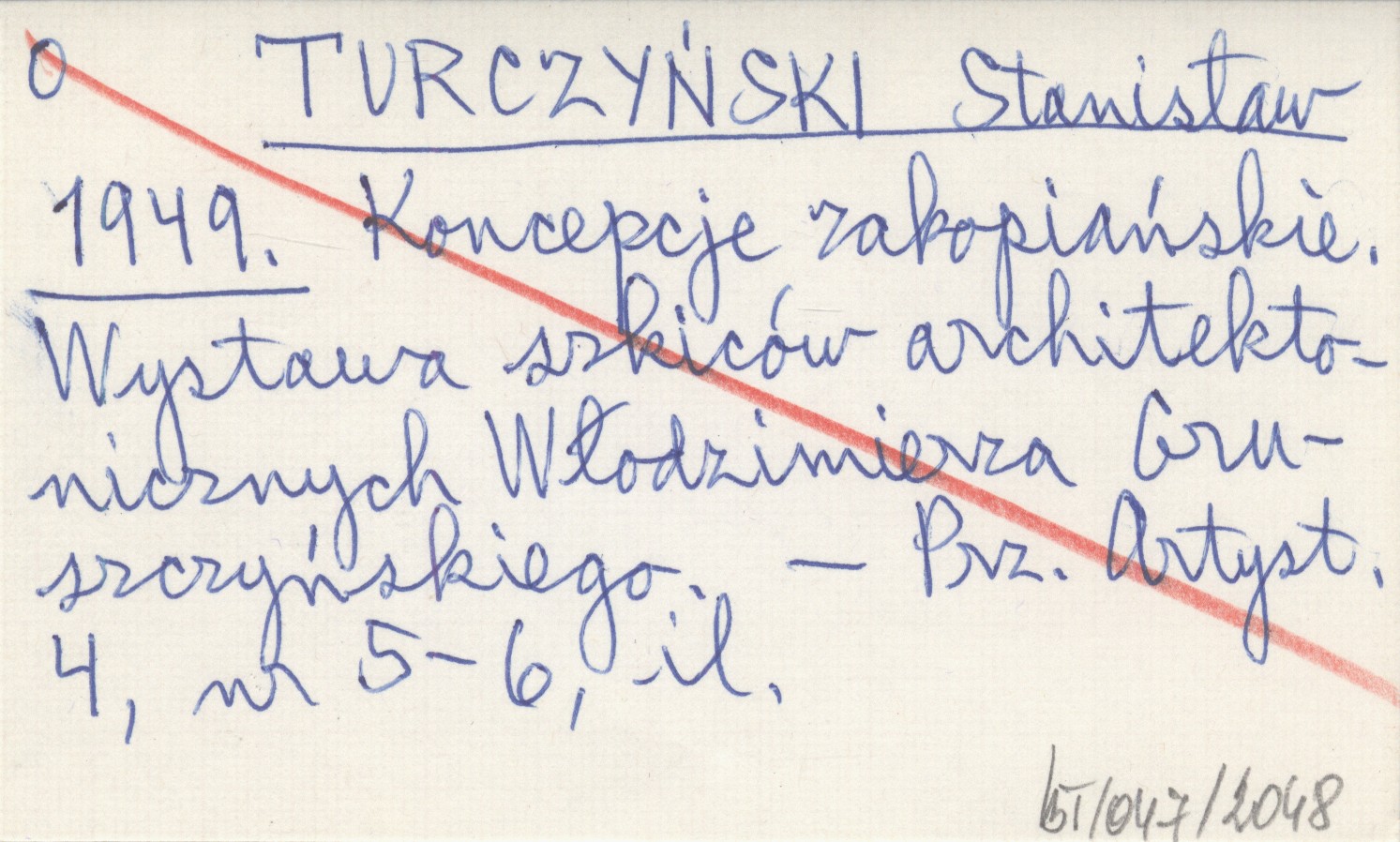 TURCZYŃSKI Stanisław 1949 Koncepcje zakopiańskie. Wystawa szkiców architektonicznych Włodzimierza Gruszczyńskiego.