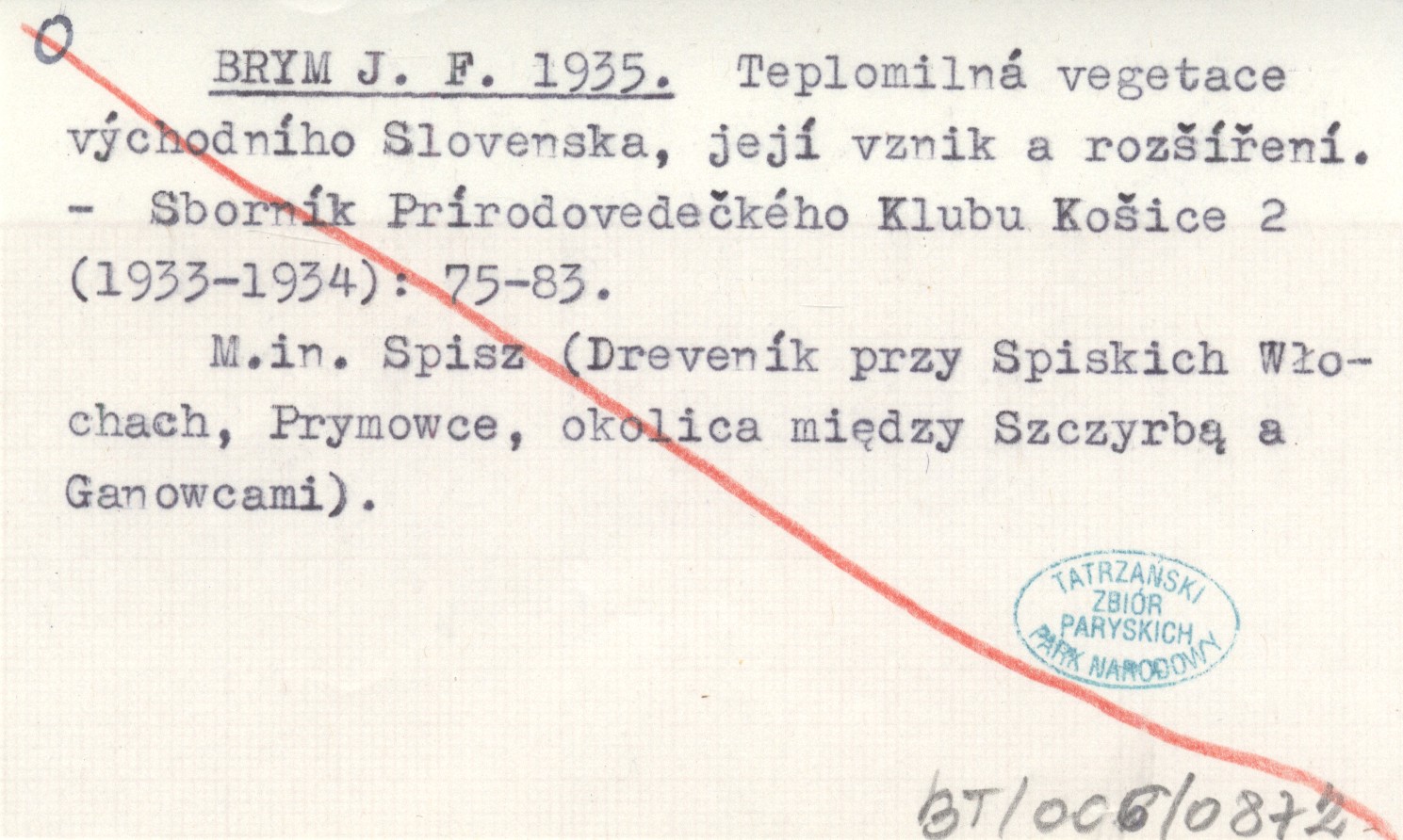 BRYM J. F. 1935 Teplomilná vegetace východního Slovenska, její vznik a rozšíření.