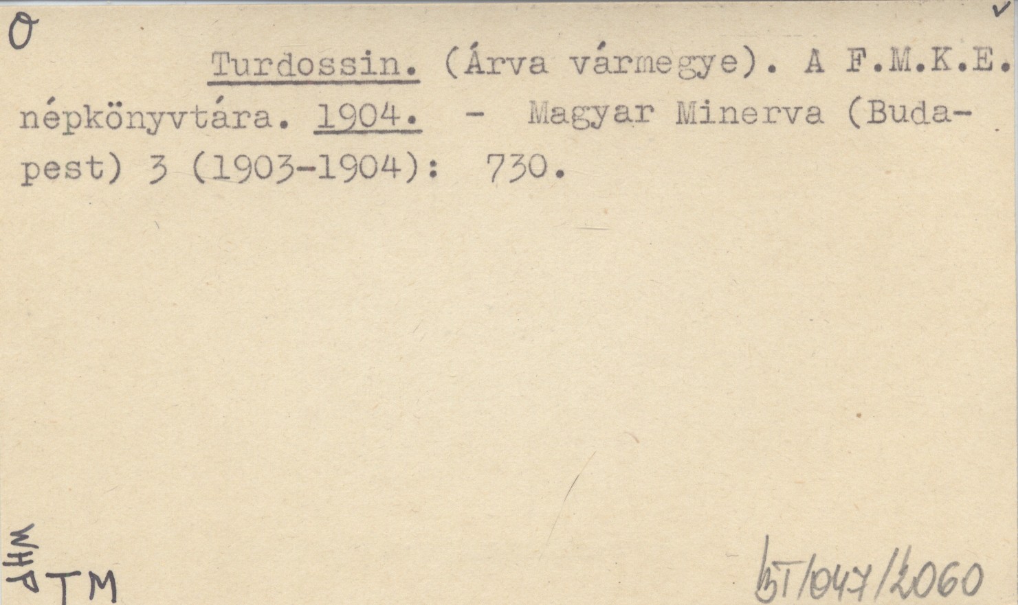 Turdossin. (Árva vármegye). A F.M.K.E. népkönyvtára. 1904