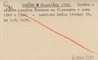 TURČEK František 1950 Zpráva o výskyte lesných škodcov na Slovensku v roku 1947 a 1948.