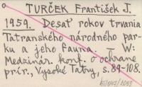TURČEK František J. 1959 Desať rokov trvania Tatranského národného parku a jeho fauna.