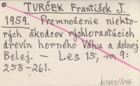 TURČEK František J. 1959 Premnoženie niektorých škodcov rýchlorastúcich drevín horného Váhu a dolnej Belej.