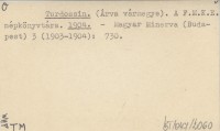 Turdossin. (Árva vármegye). A F.M.K.E. népkönyvtára. 1904