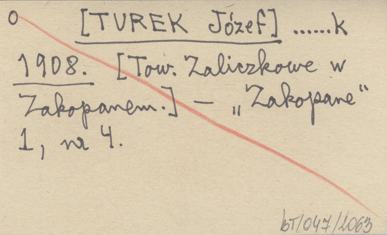 ......k [TUREK Józef] 1908 [Tow. Zaliczkowe w Zakopanem].