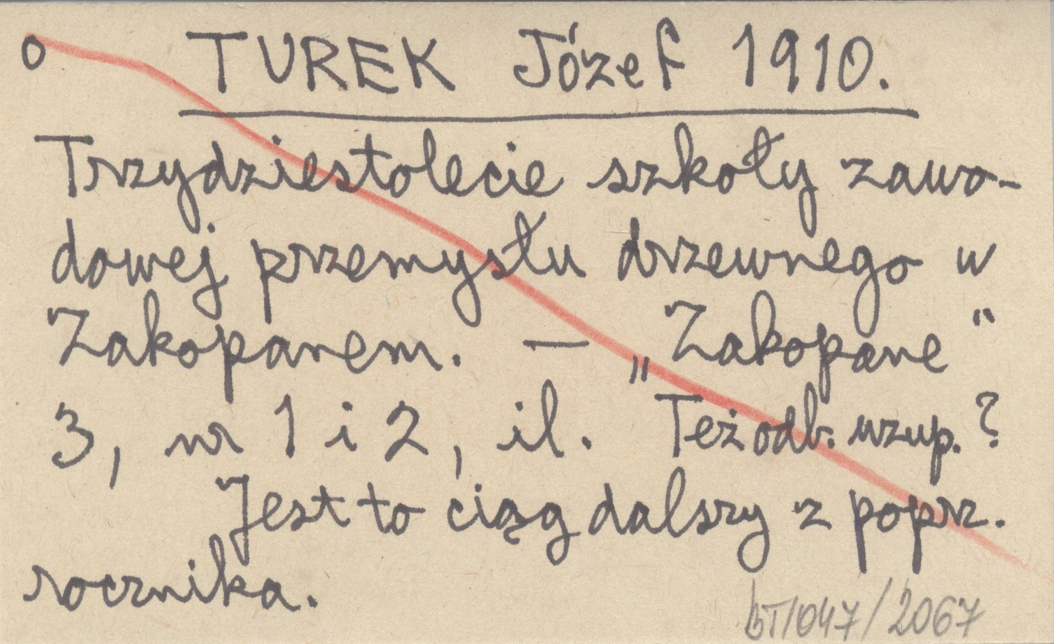 TUREK Józef 1910 Trzydziestolecie szkoły zawodowej przemysłu drzewnego w Zakopanem.
