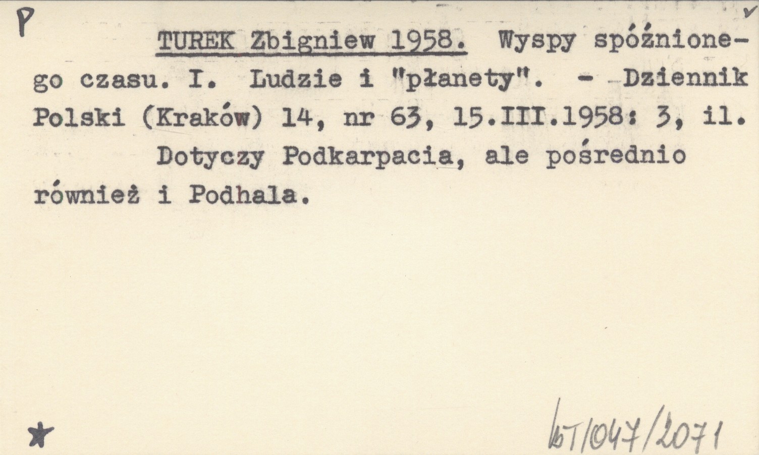 TUREK Zbigniew 1958 Wyspy spóźnionego czasu. I. Ludzie i "płanety".