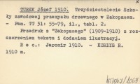 TUREK Józef 1910 Trzydziestolecie szkoły zawodowej przemysłu drzewnego w Zakopanem.
