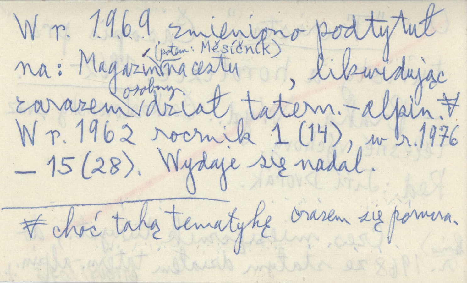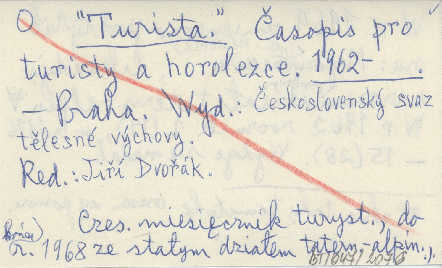 Československý svaz tělesné výchovy, Turista (Praha) , 1962- . Časopis pro turisty a horolezce. Czes. miesięcznik turyst., do końca r. 1968 ze stałym działem tatern.-alpin. W r. 1969 zmieniono podtytuł na: Magazín (potem: Měsíčník) na cestu, likwidując zarazem osobny dział tatern.-alpin. choć taką tematykę czasem się pomra. W r. 1962 rocznik 1 (14), w r. 1976 - 15 (28). Wydaje się nadal.