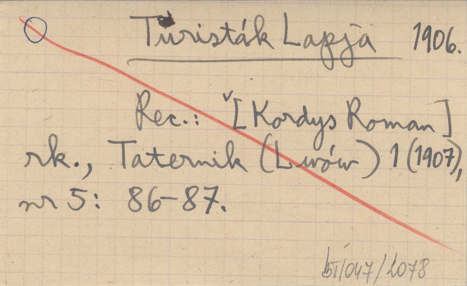 REC: [KORDYS Roman] rk., Taternik (Lwów) 1 (1907), nr 5: 86-87.