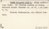 TUREK Zbigniew 1958 b Wyspy spóĽnionego czasu. IV. Turbiny czekaj± na wiosnę.