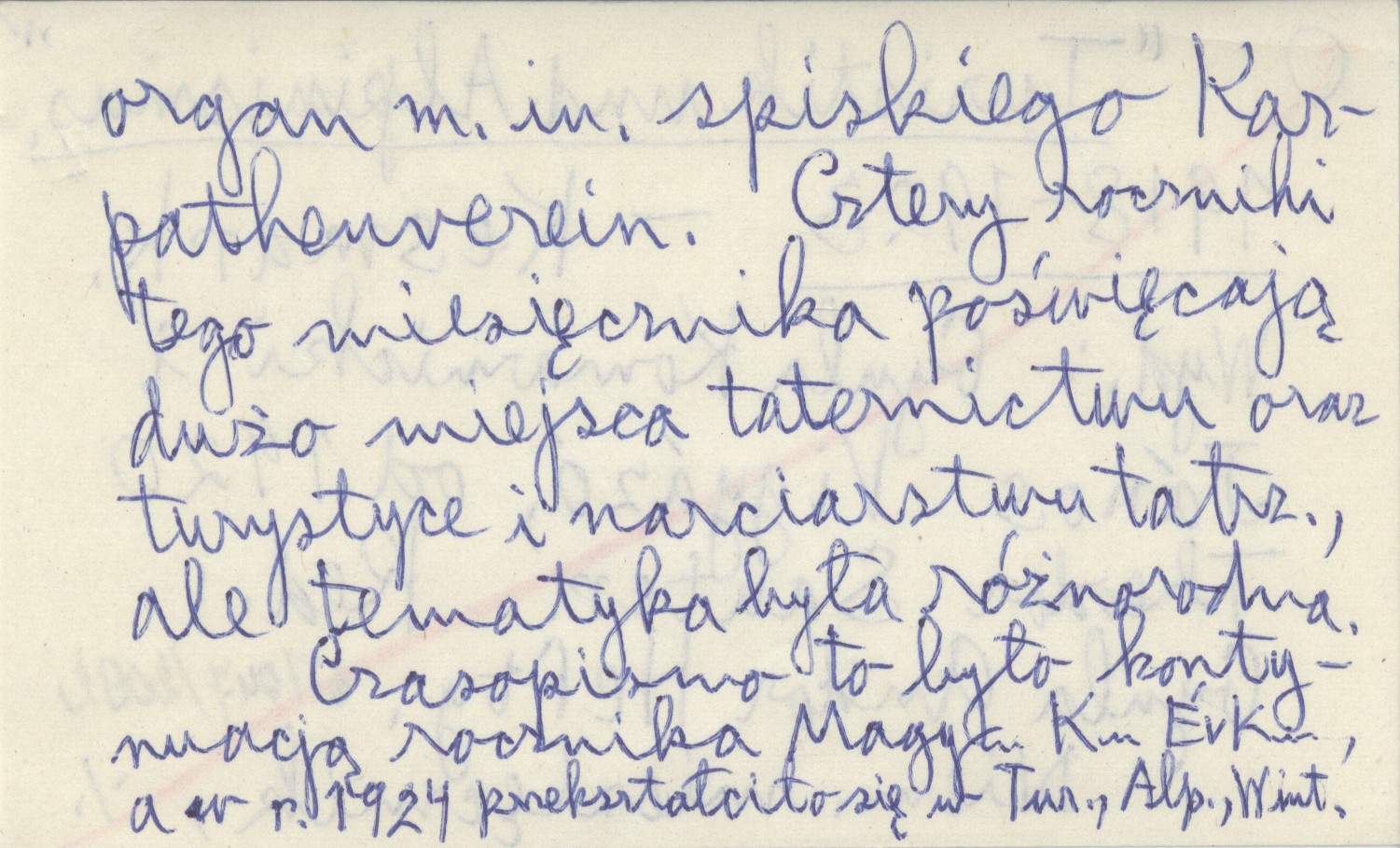 Turistik und Alpinismus (Kesmark) , 1918-1923. Niem. miesięcznik, organ m.in. spiskiego Karpathenverein. Cztery roczniki tego miesięcznika poświęcają dużo miejsca taternictwu oraz turystyce i narciarstwu tatrz., ale tematyka była różnorodna. Wyd.: Gyula Komarnicki i János Vigyázó, od 1920 Theodor Sauter. Czasopismo to było kontynuacją rocznika Magyar Km ÉvKm, a w r. 1924 przekształciło się w Turistik, Alpinismus, Wintersport.