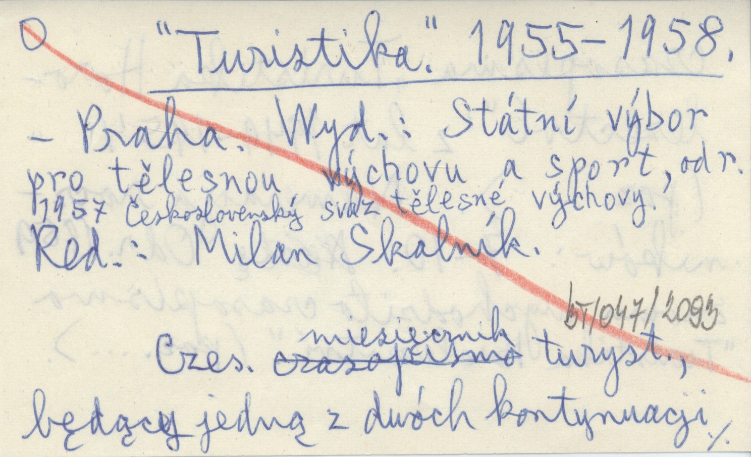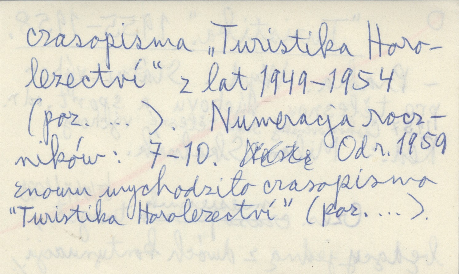 Turistika (Praha) , 1955-1958. Wyd.: Státní výbor pro tělesnou výchovu a sport, od r. 1957 Československý svaz tělesné výchovy. Czes. miesięczni turyst., będący jedną z dwóch kontynuacji czasopisma "Turistika Horolezectví" z lat 1949-1954 (poz. ...). Numeracja roczników: 7-10. Od. r. 1959 znowu wychodziło czasopismo "Turistika Horolezectví" (poz. ...).