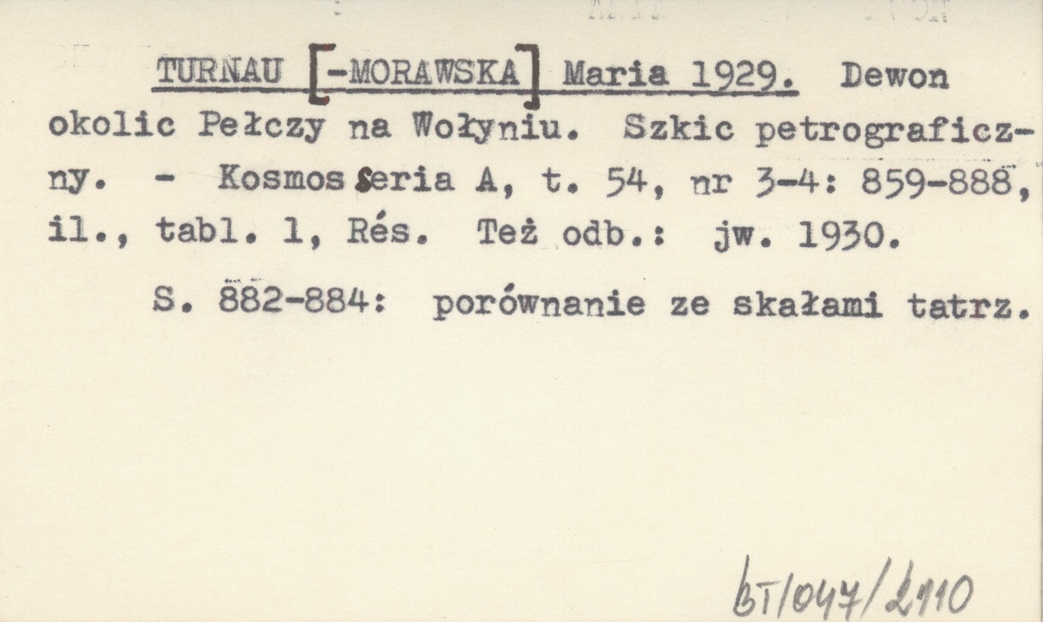 Kosmos, Ser. A, t. 54, nr 3-4: 859-888, il., 1 k. tabl., Rés. S. 882-884: porównanie ze skałami tatrz. Też odb.: jw. 1930.
