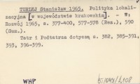 TURLEJ Stanisław 1965 Polityka lokalizacyjna [w województwie krakowskim].