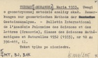 TURNAU [-MORAWSKA] Maria 1932 a Uwagi o geometrycznej metodzie analizy skał.
