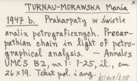 TURNAU-MORAWSKA Maria 1947 b Prakarpaty w świetle analiz petrograficznych. Precarpathian chain in light of petrographical analysis.