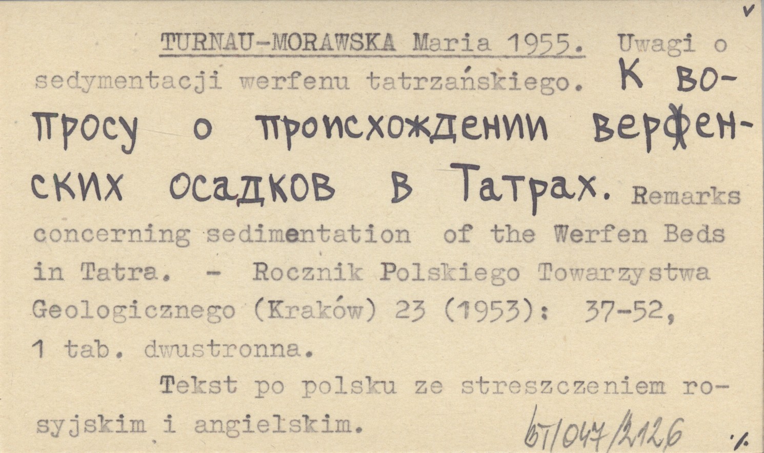 TURNAU-MORAWSKA Maria 1955 Uwagi o sedymentacji werfenu tatrzańskiego. K voprosu o proischoždenii verfenskich osadnikov b Tatrach. Remarks concerning sedimentation of the Werfen Beds in Tatra.