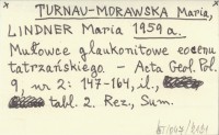 TURNAU-MORAWSKA Maria LINDNER, Maria. ; 1959 a Mułowce glaukonitowe eocenu tatrzańskiego.