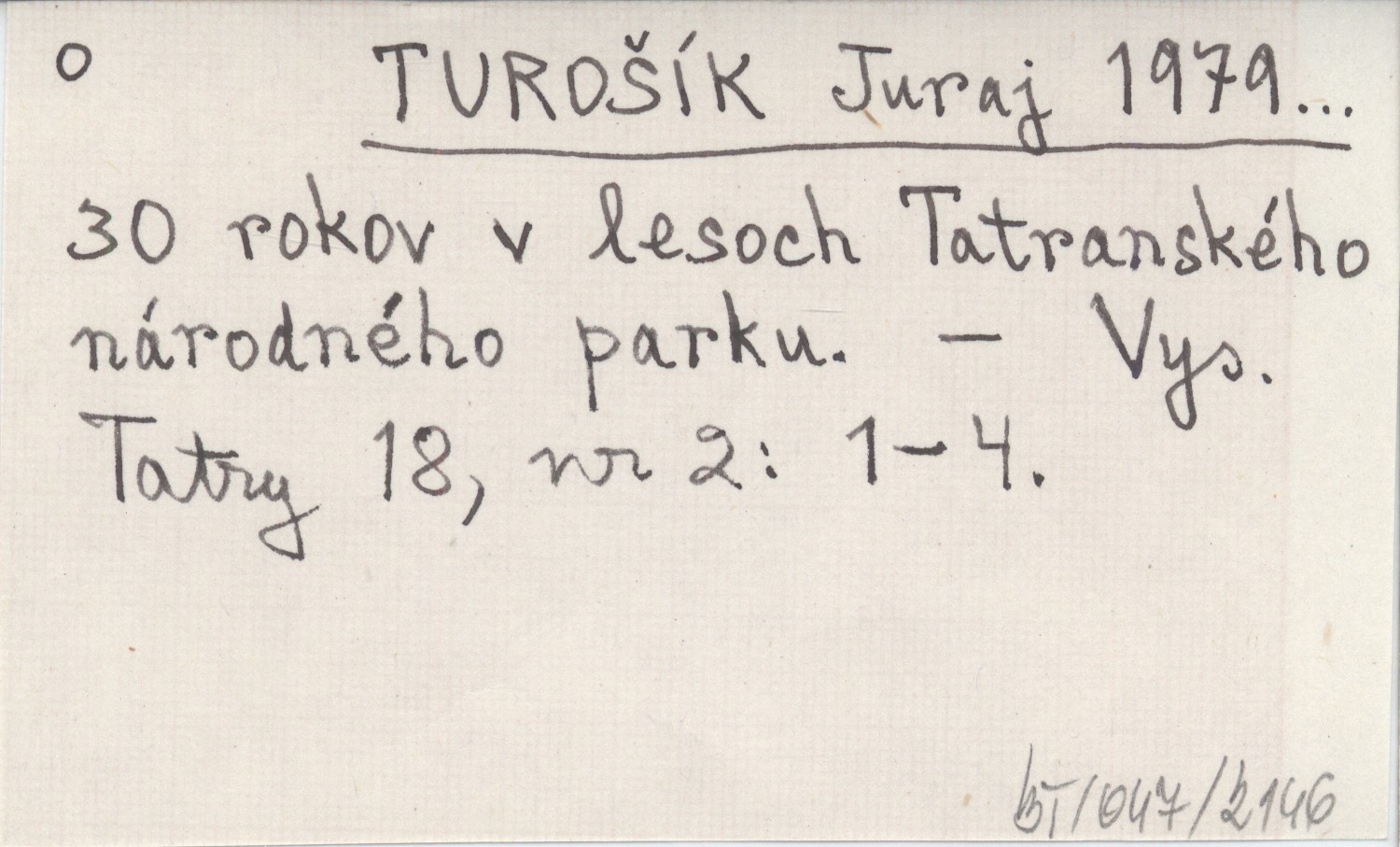 TUROŠÍK Juraj 1979... 30 rokov v lesoch Tatranského národného parku.