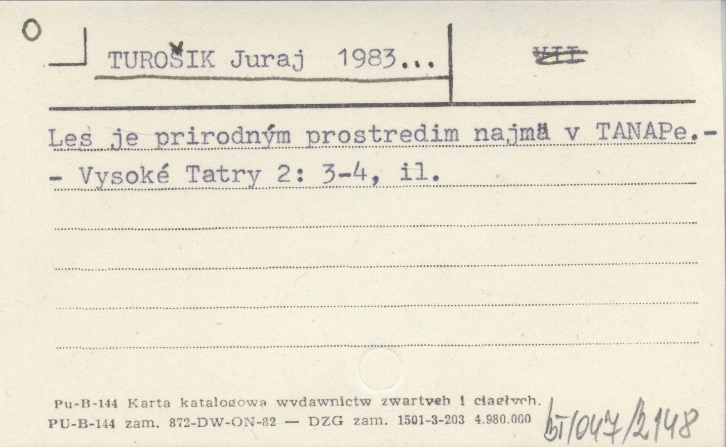 TUROŠIK Juraj 1983... Les je prirodným prostredim najmä v TANAPe.