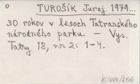 TUROŠÍK Juraj 1979... 30 rokov ochrany prírody Tatranského národného parku.