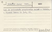 TUROŠIK Juraj 1983... Les je prirodným prostredim najmä v TANAPe.