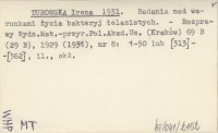 TUROWSKA Irena 1931 Badania nad warunkami życia bakteryj żelazistych.