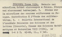 TUROWSKA Irena 1934 Badania nad mikroflorą źródeł siarczanych w Polsce. Studja nad siarczanemi bakterjami. I. Etudes sur la microflore des sources sulfureuses en Pologne. Contribution á l'étude des sulfobactéries. I.